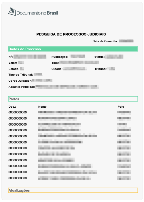 Ao contratar, você recebe um relatório detalhado com os resultados da varredura nacional. Ele pode confirmar que não há processos em andamento (Nada Consta) ou listar processos ativos e encerrados, trazendo clareza e segurança para suas decisões.